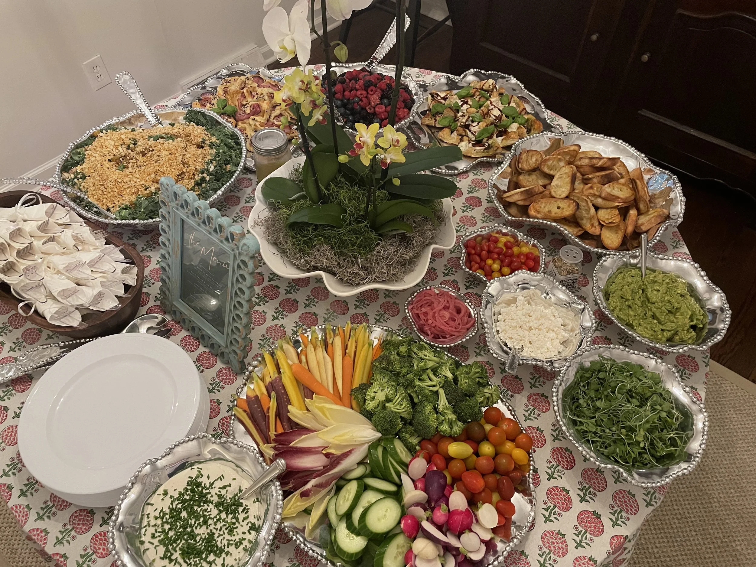 Cooking and hosting has always been my love language. I love to gather friends and loved ones together for events both special and small. My style of food is effortless, yet elevated - the Ina Garten way! Incorporating other local businesses into recipes and hosting experiences is a go-to way to elevate. Over the years, other aspects of hosting have become similar obsessions for me - picking the perfect invitation, doing my own florals, and nailing the theme.
